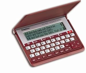 Franklin KJV-570 Holy Bible, King James Version, translation of old and new testaments, search and retrieve by book,chapter,verse or keywords with phonetic spell correction, index of book,chapter,chapter title and verse, daily devotionals, bookmark passages for future reference,learn-a-verse, databank stores up to 100 names and numbers, calculator, local/world clock, 3-line display, burgundy
