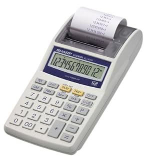The EL1611PA 12-digit, printing calculator by Sharp can be used for light accounting in the home or small office. It features + tax and - tax keys, along with 4-key memory which includes memory plus, memory minus, and recall/clear. The dual power calculator runs on four AA batteries or can be connected to an outlet via the included AC adaptor. Its compact size allows it to sit unobtrusively on any desk or table.